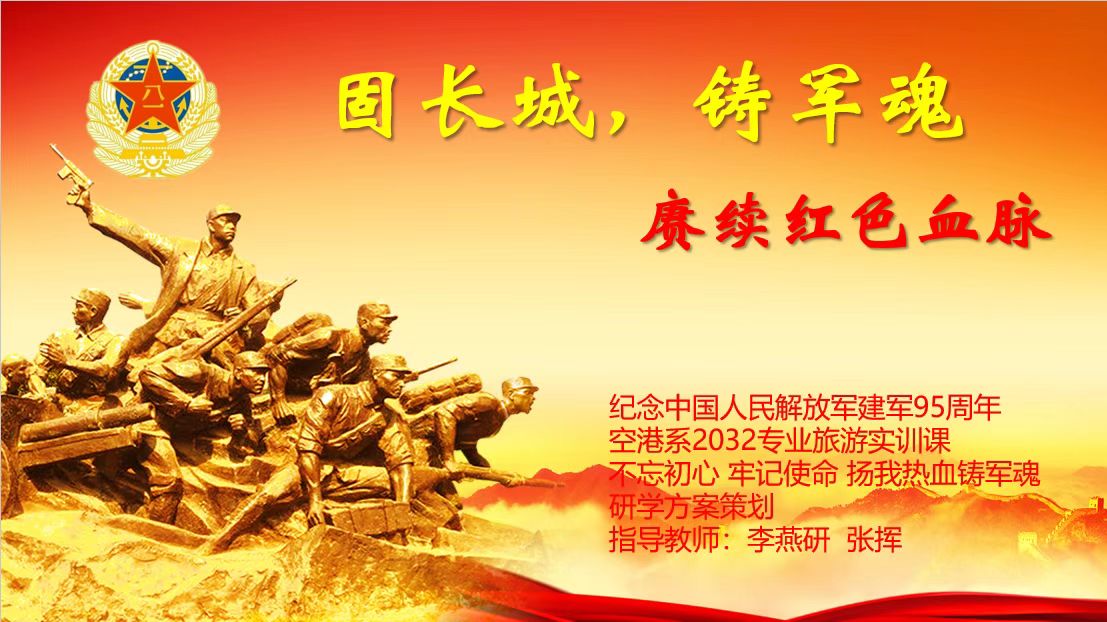 心系强军梦,专业融思政为纪念建军95周年,落实教育部《高等学校课程思政建设指导纲要》中将课堂思政融入专业课程教学的号召,全面贯彻习总书记提出的强国强军思想,提升大学生的爱党爱国爱军情怀,激发大学生崇尚英雄、报国强军的政治热情,发挥好《旅游策划实训》课程的教书育人作用,旅游策划教学组的李燕研和张挥老师在空港管理学院院长杨晓青的关心下,在教研室主任梁向兵、邵咏亮的支持下,进行了多次调查研究和集中讨论...