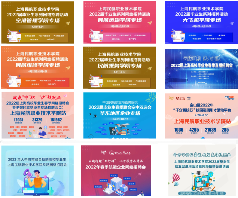 1.开展就业季系列招聘专项行动,将以学院就业创业平台为载体开展“百日冲刺我先行”2022届毕业季网络双选会系列活动。同时,依托徐汇区、长宁区、浦东新区就业促进中心等社会力量,联合举办各类行业专场、地区专场等空中双选会,进一步扩大学生就业择业范围。