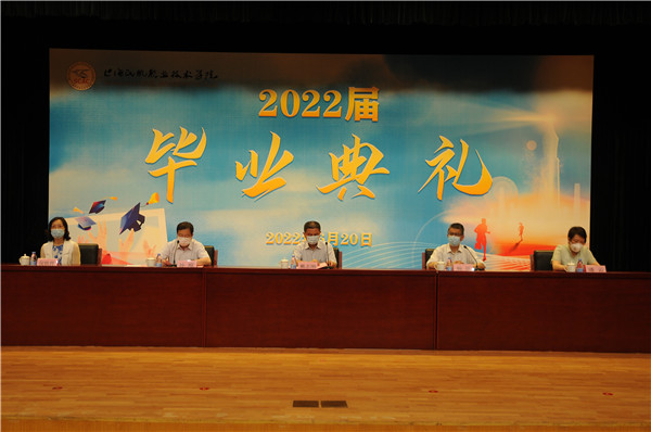 孙暄副院长宣读2022届毕业生名单和优秀毕业生名单。民航运输学院黎远姿等24人、民航乘务学院王萌等23人、空港管理学院叶卉等19人、民航维修学院汪灏等21人、大飞机学院左茏祺等5人共92名同学荣获上海市优秀毕业生称号,庞雨婷等289名同学获评学院优秀毕业生。毕业典礼上以班级为单位集体领取毕业证书,76个班级代表分批次上场,台上领导共同为学生们颁发了毕业证书。